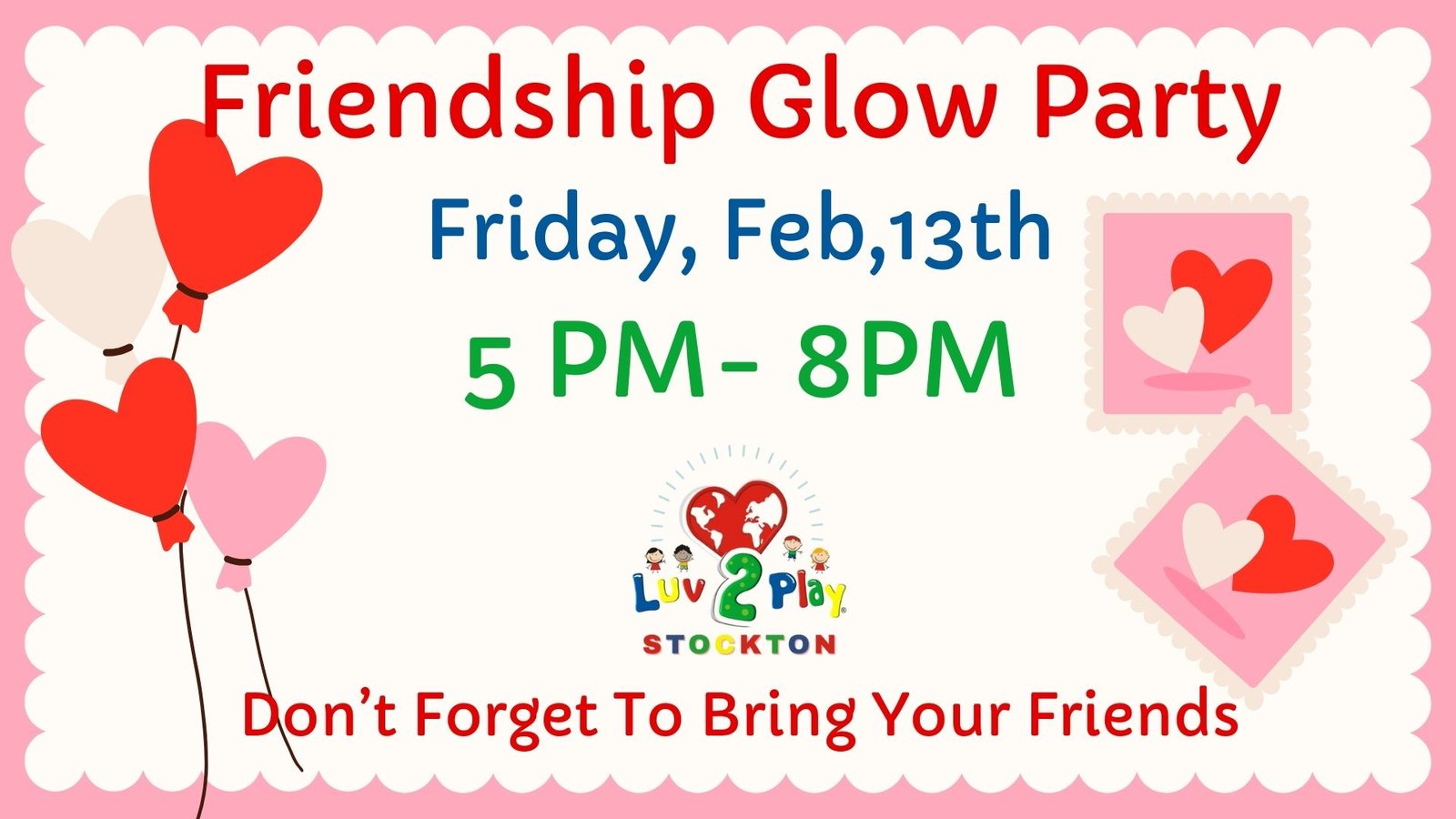 Friendship Glow Night at Luv 2 Play Stockton